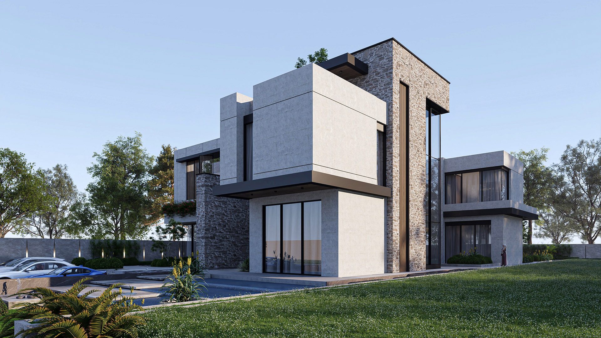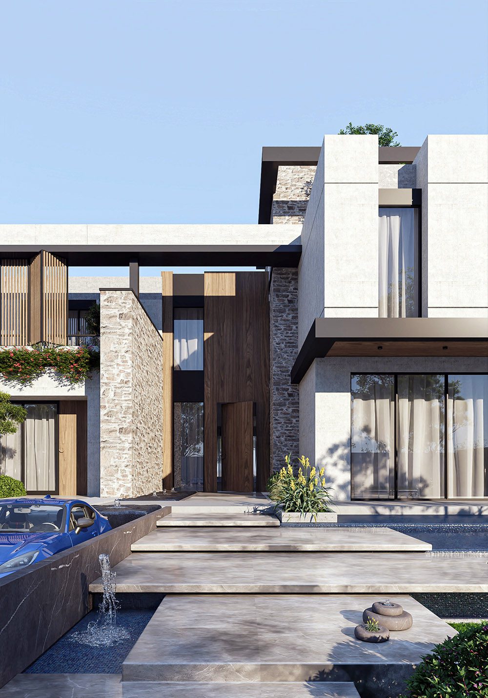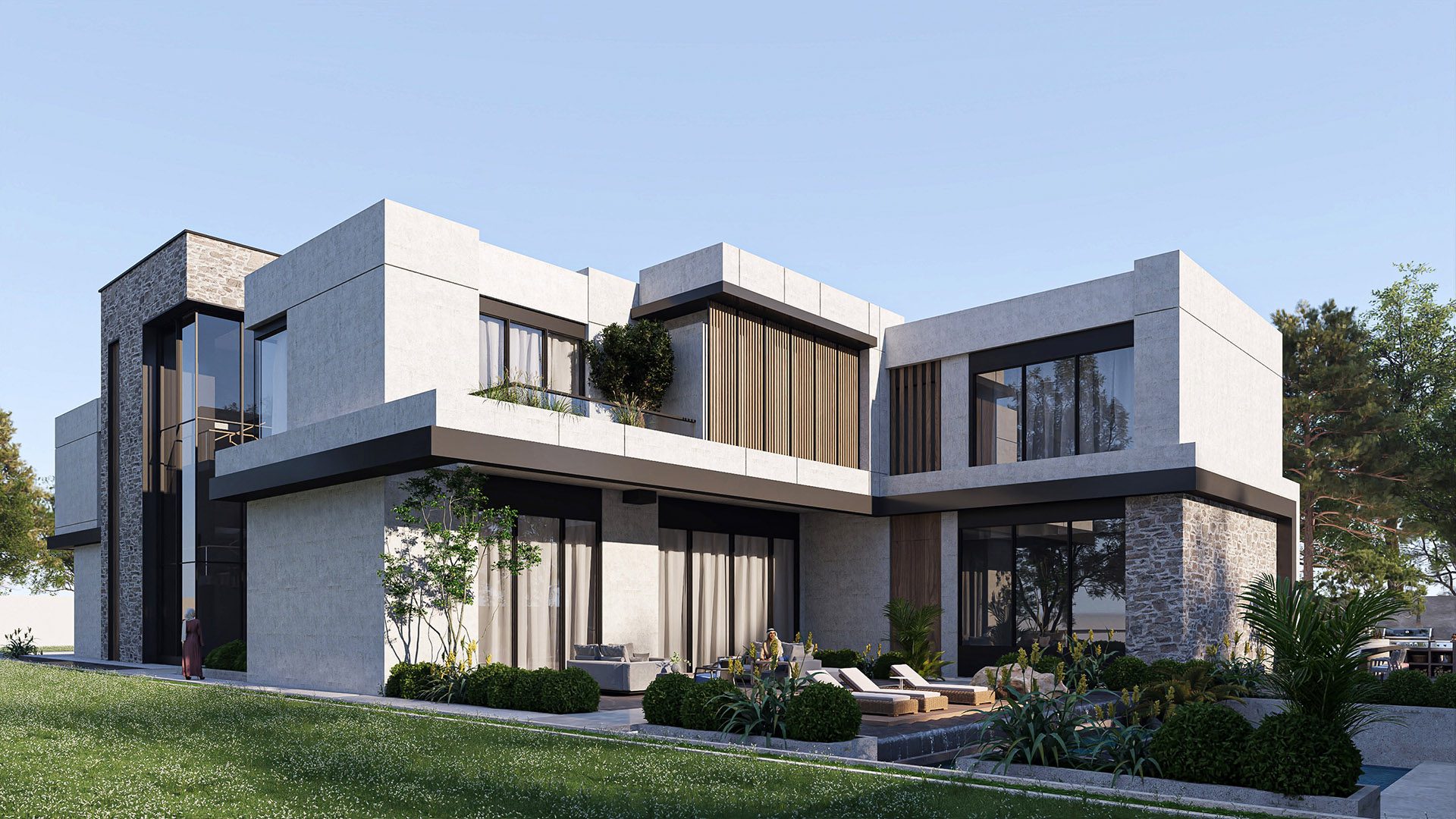 A bold minimalistic villa with clean lines, geometric volumes, and a monochromatic palette. Lighting strips accentuate architectural edges, creating a sculptural identity that feels futuristic yet serene. Perfect for those who appreciate simplicity elevated to art.