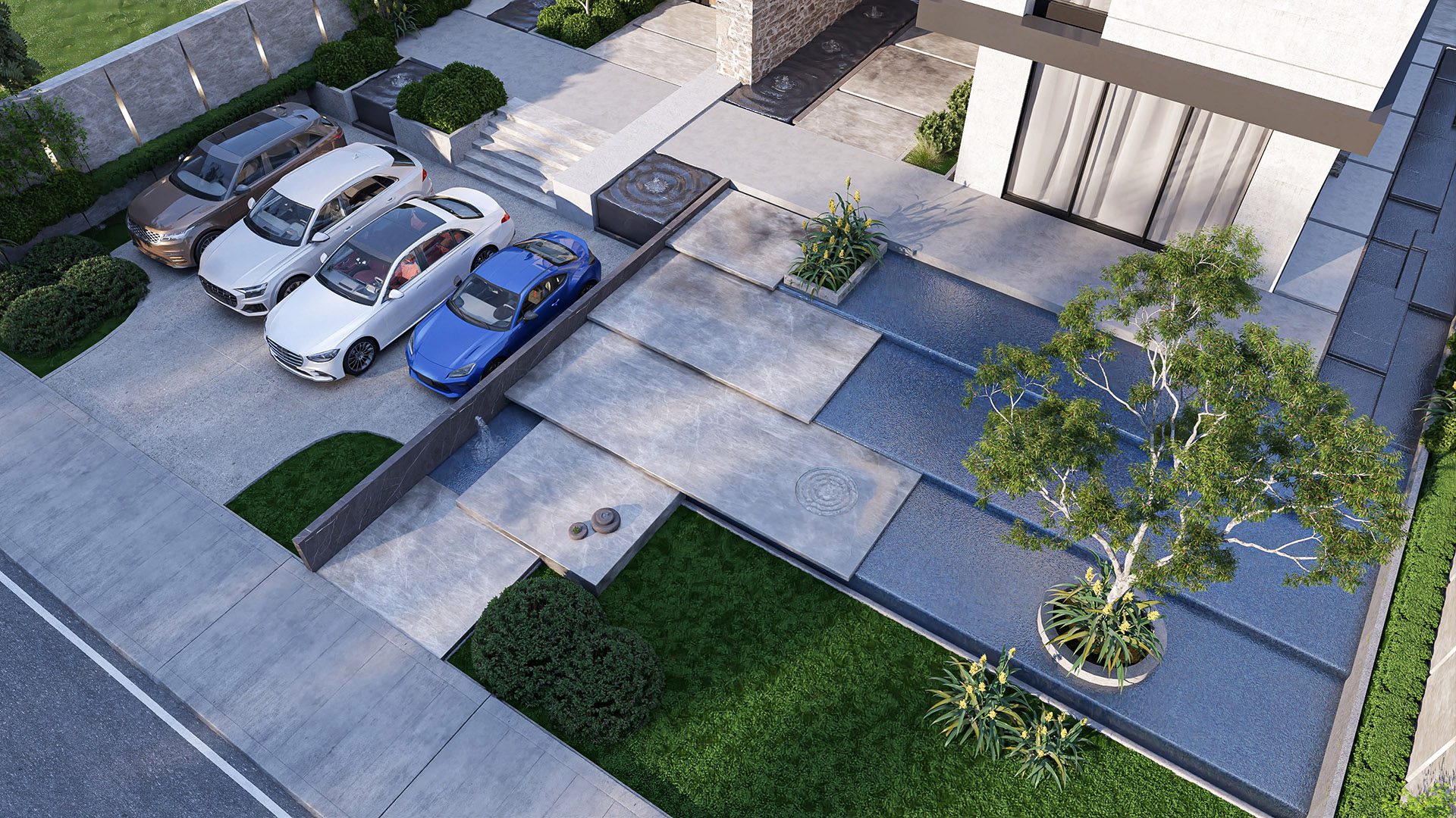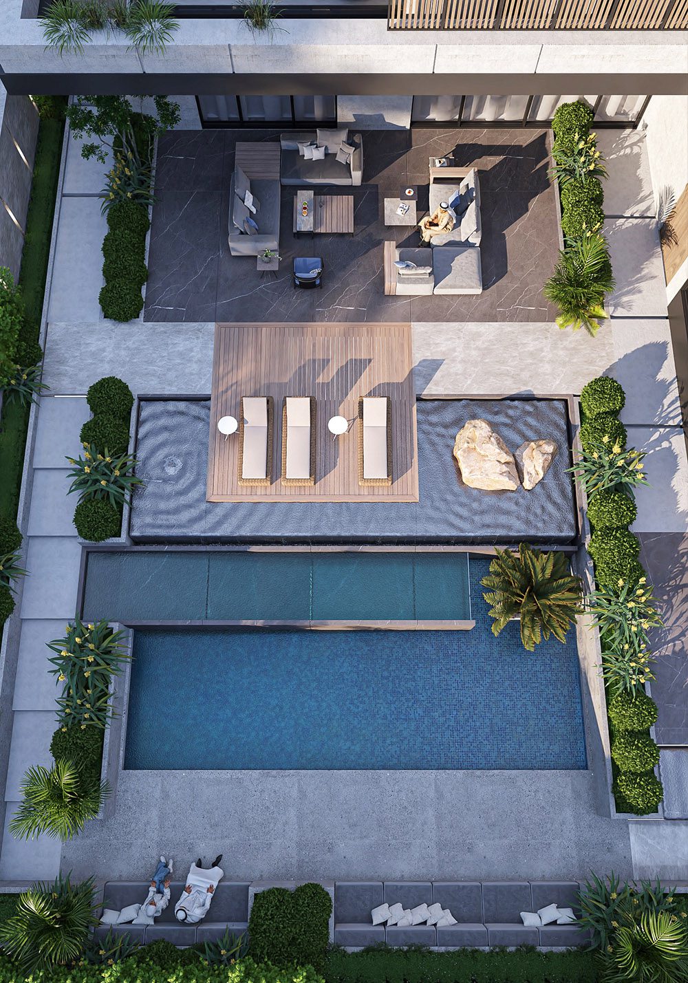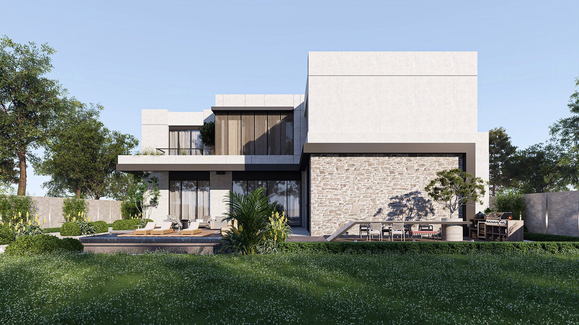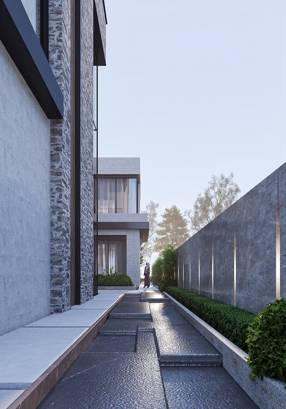 A bold minimalistic villa with clean lines, geometric volumes, and a monochromatic palette. Lighting strips accentuate architectural edges, creating a sculptural identity that feels futuristic yet serene. Perfect for those who appreciate simplicity elevated to art.